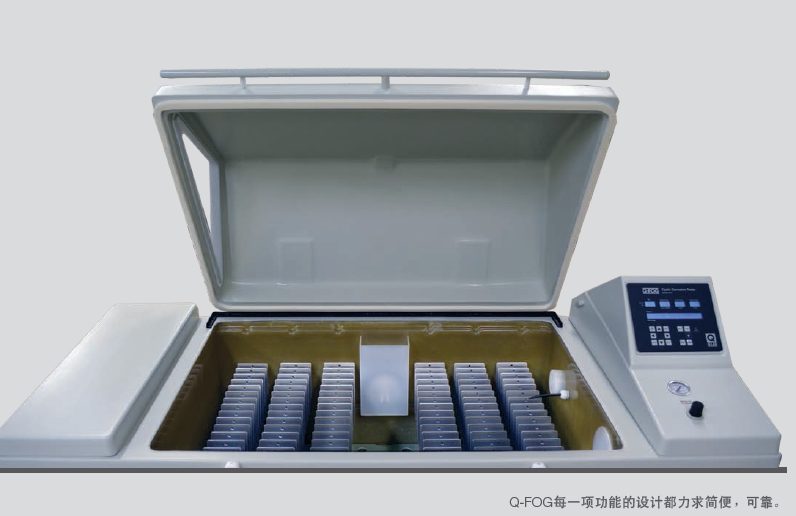 Q-FOG循環(huán)腐蝕試驗箱的安裝、設(shè)置和 操作都十分簡便。低腰線設(shè)計和易于開啟 的頂蓋方便試樣放置與評估過程。所有 型號的鹽霧箱都是全自動的,可以每周7 天、每天24小時連續(xù)工作,無需照看。鹽 霧箱是智能型的,可自動提醒您試驗期間 可能遇到的問題。